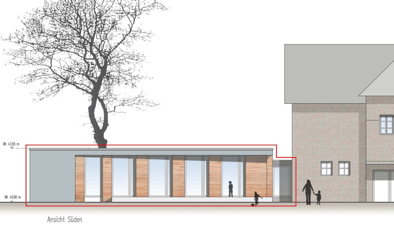 Hamburg, RahlstedtNeubau eines Speiseraumes als Anbau an eine bestehende Schule.