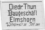 Diedrich Thun die, Firma am 29. Dezember 1909. In Zusammenarbeit mit seiner Frau Helene kam es zu einer raschen Entwicklung der Firma. In den ersten Jahren entstanden Wohn-, Geschäftshäuser und